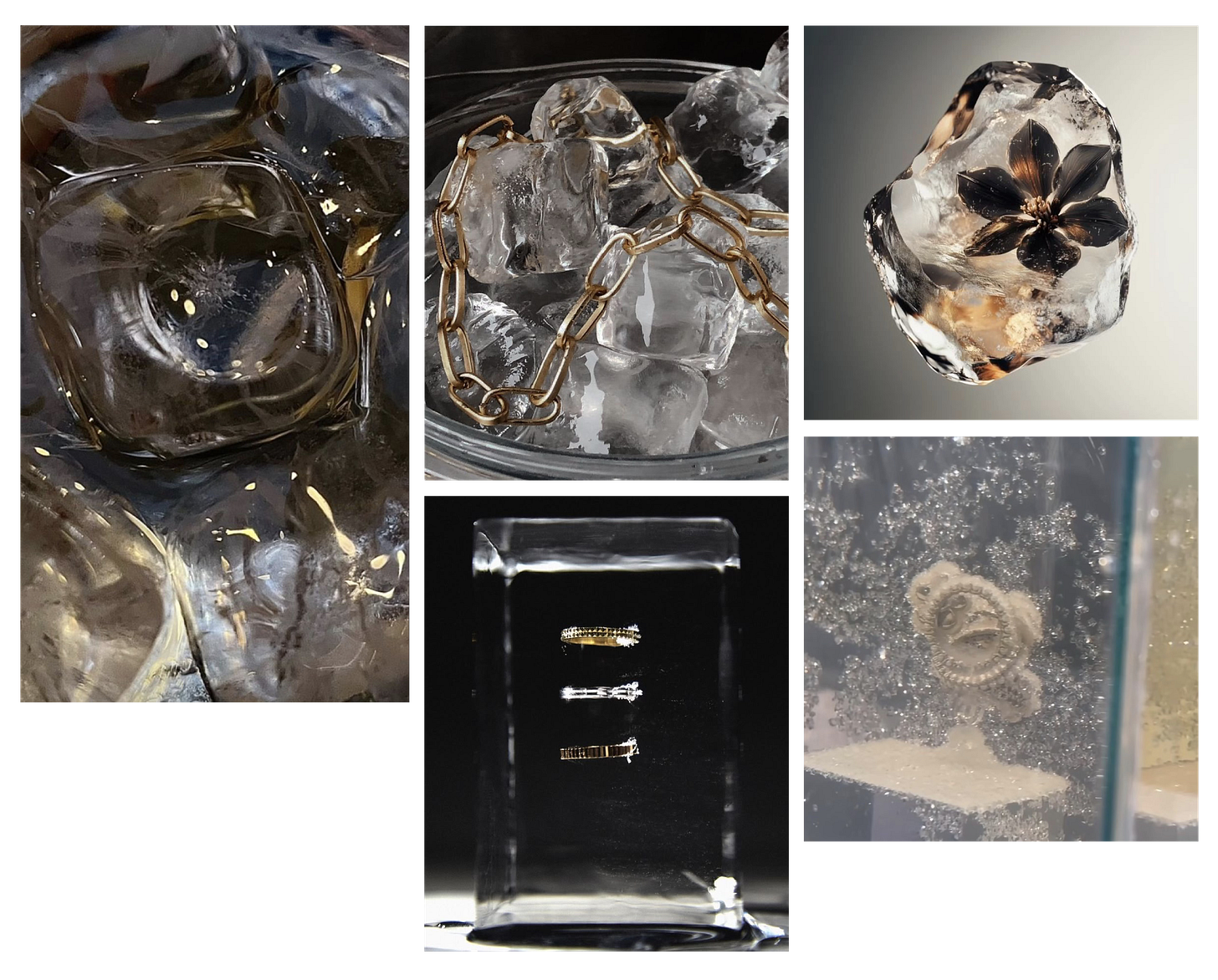 As a symbolic twist, the pieces would be encased in large ice cubes, gradually melting under the lights. As the ice dissolves, the jewelry would emerge—fully revealed as luminous supernovas, shimmering under the glow. This concept not only honors the collection’s name but also highlights the enduring nature of fine jewelry—crafted to withstand time itself.